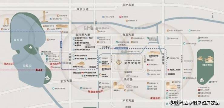 自驾出行:项目紧邻甪直大道、东方大道两大主干道,北接金鸡湖大道(约5分钟车程),南连独墅湖高教区,自驾通达园区核心区约20分钟。