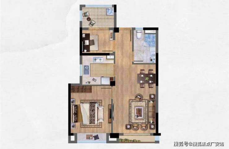 餐客厅相连,空间阔绰,居住舒适度高,灵动空间可以改成书房或者宝宝房,空间使用灵活,适合三口之家。
