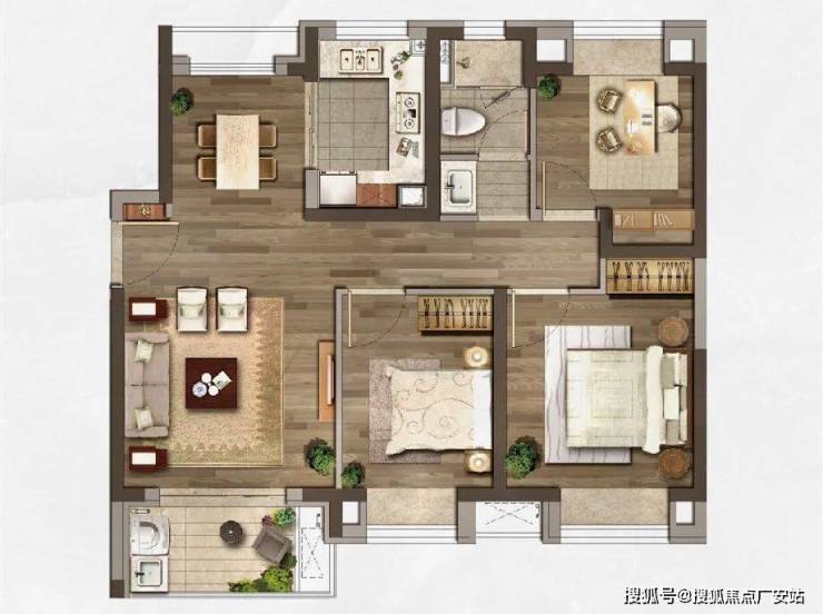 动静区分,三房功能齐全。加上大面积星空露台,打造多功能的休息空间,搭配心仪绿植花卉,摆上一套茶桌,一边感受大自然的美好,一边与亲朋好友聊天。