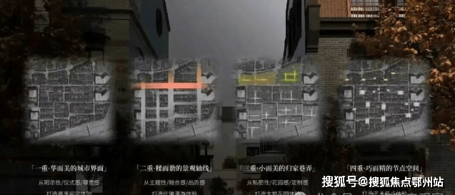四重景观空间层层递进的隐居哲学从城市界面到节点空间,由大到小打造“四重空间感受”,营造中西和鸣的感官体验。从华而美的城市道路、糅而谐的景观轴线,美而精的归家巷弄、雅而巧的节点空间,每一处场景皆实现私密与艺术的交融,感受城市繁华与归家宁静的交叠。
