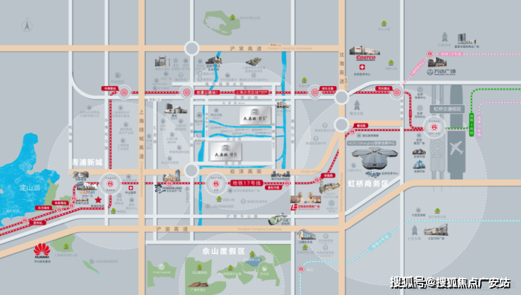 作为链接虹桥主城片区与长三角生态绿色一体化发展示范区的交通动脉,上海示范区线(在建)核聚华为研发基地、长三角演艺中心、美的全球创新园区、西虹桥科创中心、安踏全球零售总部等多个产业高地