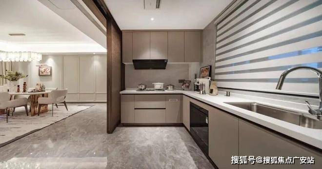 高层产品以双背景墙+全品牌矩阵构建品质生活基底。主卧采用硬包背景墙,客厅采用岩板背景墙搭配金属线条的双背景墙交付,中央空调与地暖形成恒温系统,方太厨电三件套匹配摩恩水槽龙头,打造专业烹饪空间。
