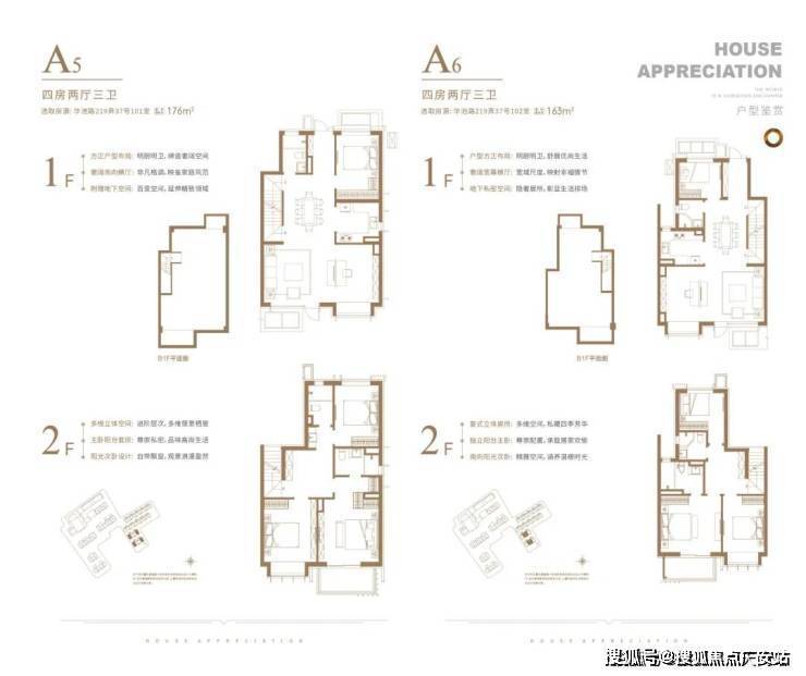 下叠户型,共有三个主力户型,建面约155、163、176㎡下叠。