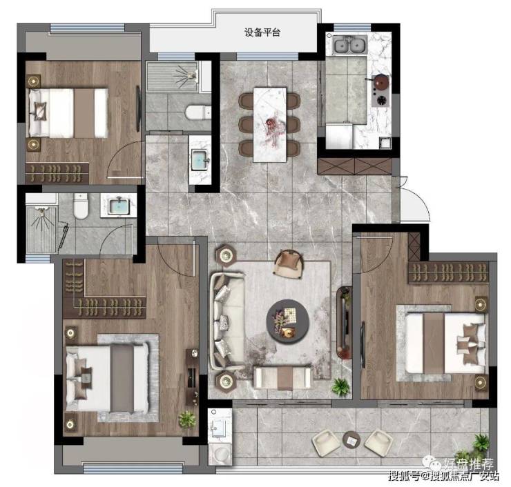 景慕:建面约143㎡、四房两厅两卫