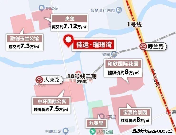 项目距离18号线二期大康路站(在建)直线约760米,未来可步行至站点。