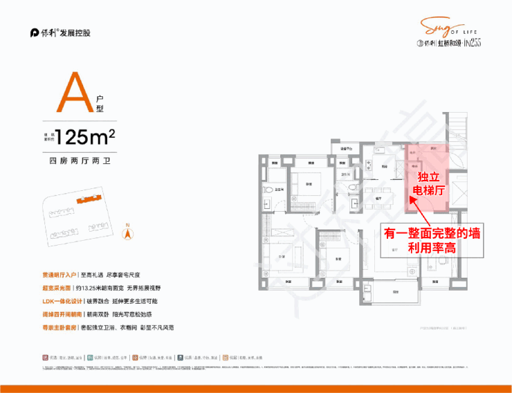 而这一次,保利虹桥和颂·IN255延续了之前的设计亮点,并加以迭代,给出了一个同级无出其右的户型。