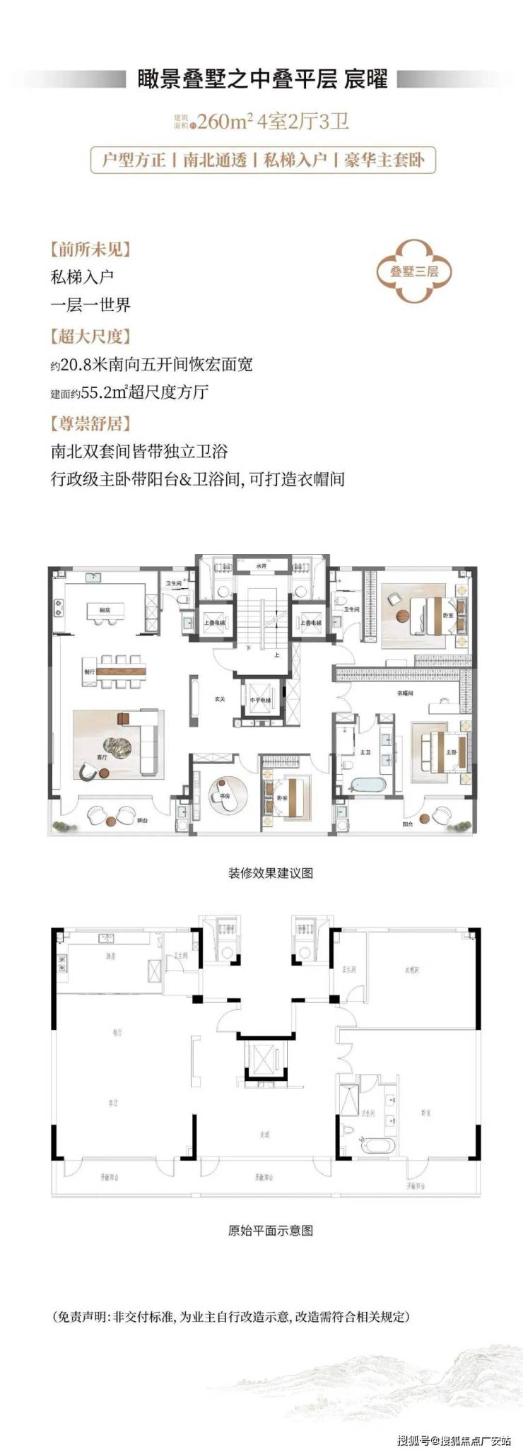 建面户型产品类型总价区间核心亮点适配人群157㎡四房两厅两卫11F四代洋房(中间户)约430-480万三开间朝南,约20㎡空中露台,南北通透,精装交付改善家庭190㎡四房两厅三卫11F四代洋房(边户)约520-580万四开间朝南,约30㎡空中露台,主卧套房,双阳台二胎家庭220㎡四房两厅三卫5+1F叠墅(下叠)约800-850万南北双庭院,约5.8米地下室,毛坯交付高端改善260㎡五房两厅三卫5+1F叠墅(中/上叠)约880-950万独立入户,大露台,主卧套房,毛坯交付三代同堂285-315㎡五房两厅四卫3F联排别墅约1200-1568万独门独院,双车位,挑高客厅,地下室,毛坯交付高净值家庭