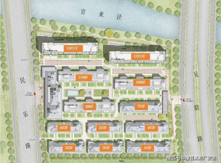 住宅指标:7栋3F联排、3栋5+1F叠加、2栋11F四代宅洋房
