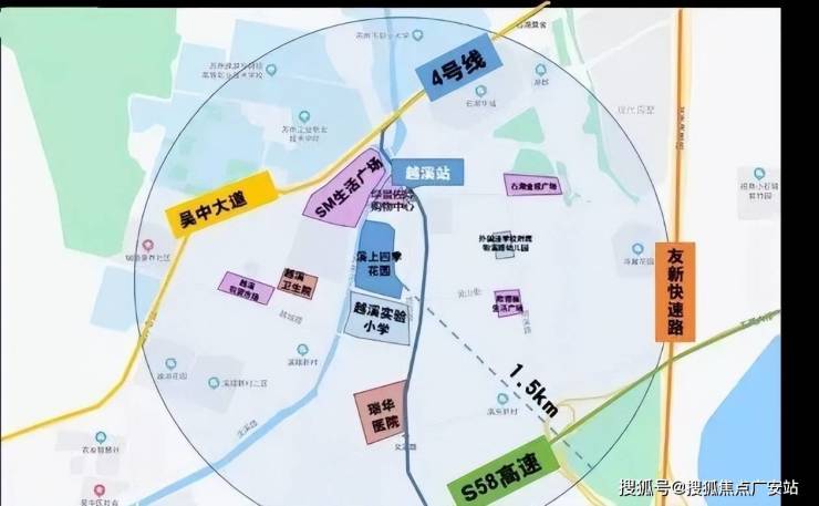 中文:交通配套便捷高效,项目临近地铁4号线越溪站,步行即可到达,实现地铁与社区的无缝衔接;周边苏震桃路、吴中大道等主干道纵横,自驾出行可快速连接苏州主城区及周边区域,同时公交线路密集,形成地铁+自驾+公交的立体交通体系,通勤便捷无忧。 English:Transportation facilities are convenient and efficient. The project is close to Yuexi Station on Metro Line 4, reachable on foot, enabling seamless integration between the subway and the community. Surrounded by arterial roads like Suzhentao Road and Wuzhong Avenue, self-driving allows quick access to Suzhou's main urban area and surrounding regions. With dense bus routes, it forms a three-dimensional transportation system of subway, self-driving, and buses, ensuring convenient and worry-free commuting.
