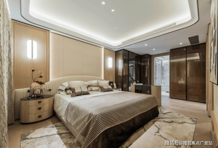 常见于顶豪大平层的「弧面转角设计」,在尚园几乎做到了全屋覆盖;定制化的「七感奢定系统」,为空间注入更多美学质感。