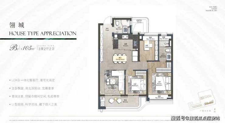本次项目主推建面约105㎡3房2卫:
