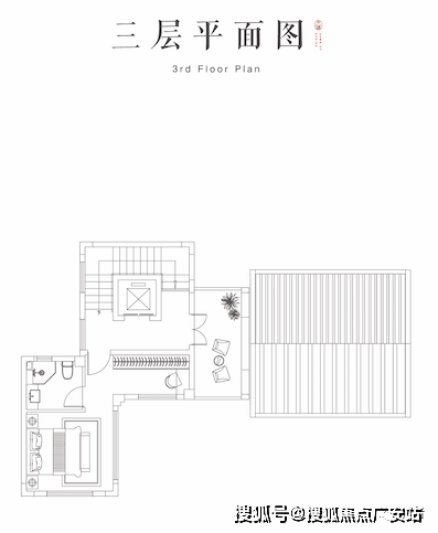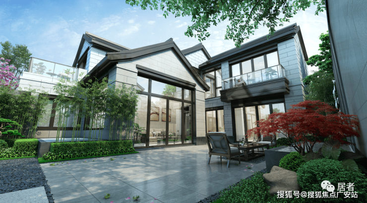 这也是一大创新设计了,和常规左右并列式的别墅有所区别,而是四方围合成南北院落,近邻又能保证私密,还有更大的实际使用面积。