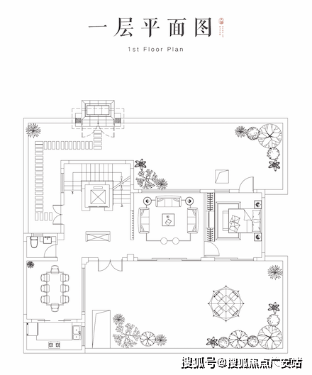 地面两层、地下一层的设计,空间阔朗感强。一层前后院子有160㎡+,相当于一个都市大平层的面积了。一楼大横厅、中西厨、老人房全都有,尺度真心亮眼。