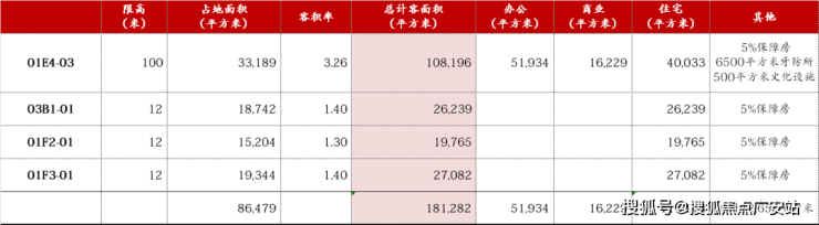 地块总占地面积33189方,容积率3.26,总建面176334平方米,地上计容建面108196平方米,地上不计容建面8704平方米,地下建面59434平方米。