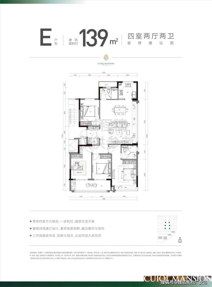 建面约139方是典型的边套户型。三个房间朝南,大面宽大采光,无数人的最爱。约37方的时髦大方厅,连接6米7的大飘窗,给人一种眼前一亮的那种大气感,约37方的时髦大方厅,可媲美大多数150+户型。