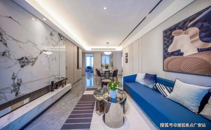 2、客厅双面背景墙:现在很多项目,连电视机背景墙都不做的情况下,翠栖府出人意料地做到“双背景墙”——电视机背景墙+沙发背景墙,开创“双背景墙”时代,其中电视机背景墙是大片岩板上墙,而沙发背景墙则是硬包的形式。提的一说的还有,主卧的背景墙,翠栖府这次也是“交付标准”。