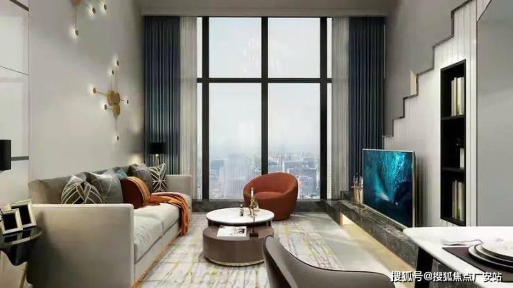 保留了客厅的挑空,将复式盘的优势被发挥得淋漓尽致。并且,一整面落地窗让整个空间更显大气。沙发旁摆放的新中式风格的小边几搭配着白色长城板,也是将整个客厅增堆满的高级感。而窗边放置的懒人椅,可以在下班后卸下满身疲惫,放松地欣赏着这灯红酒绿的世界。