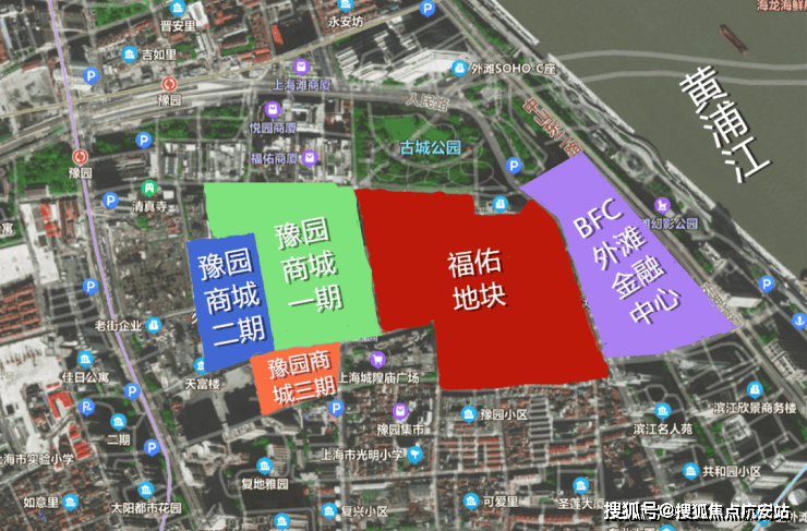 复星是黄浦老城厢片区的深耕者。在福佑地块旁,42万平方米建面的BFC外滩金融中心,以及豫园商城一、二、三期,都是复星的手笔。