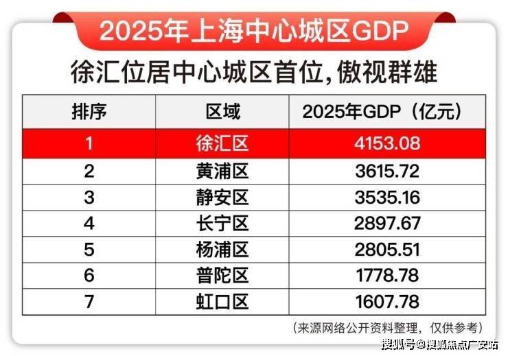 去年徐汇GDP首超4000亿,位列中心七区之首,五年人均GDP翻一番;