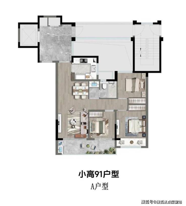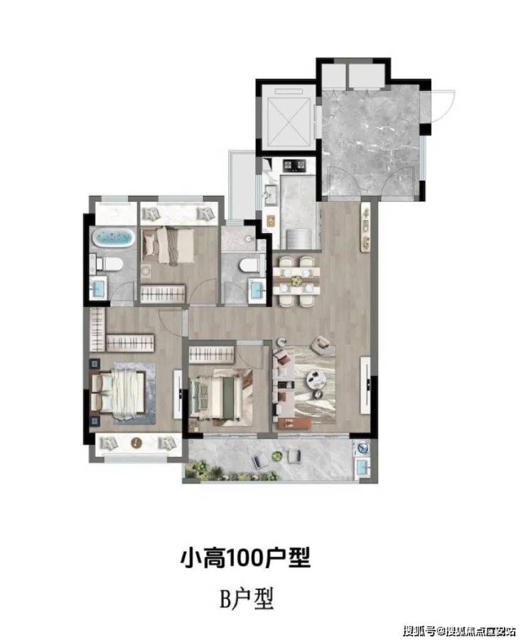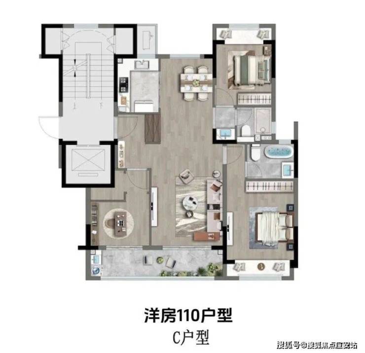 【户型】:高层91户型3房1卫、100户型3房2卫;洋房110户型三房2卫