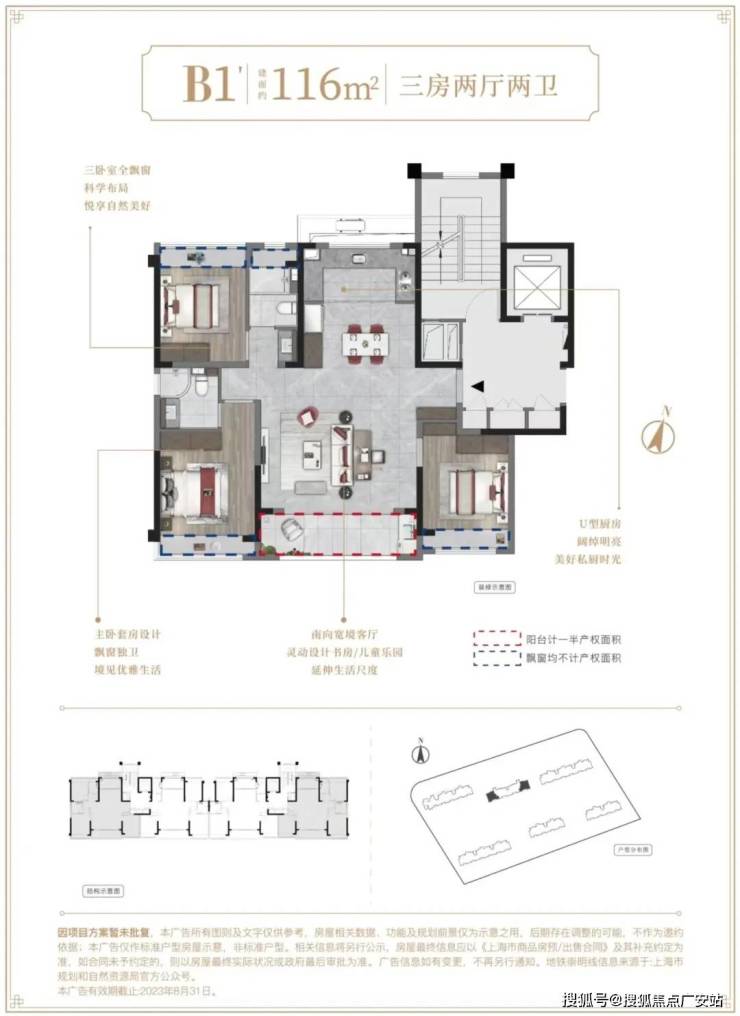 「建发联发青云上」浦东曹路地铁全新盘建面约95-116㎡3房户型房源共计448套 精装修均价5.15万/㎡ 总价450万起