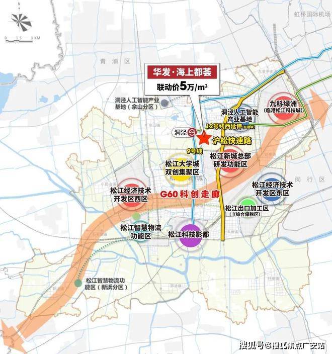 回过头来看洞泾现在的交通格局,作为9号线、12号线延伸线(在建中)、沪松快速路的黄金交汇点,它几乎串联了整个G60的科创能量,也成为松江链接传统市中心的咽喉枢纽,这样的板块不是未来上海西南潜力之地,谁会是?!