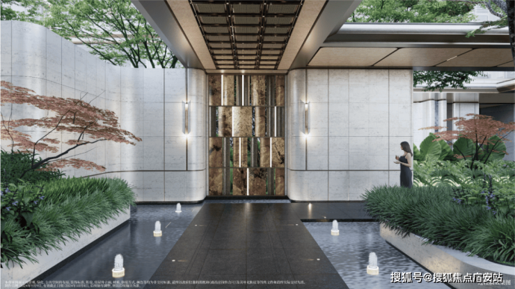 中央叠水空间,一次自然与叠水的相得益彰,灵感源自汇金湖:徐汇记忆里的成长映象,海上·清和玺售楼处电话 400-9692-958汇聚徐汇一代人的记忆与想象。
