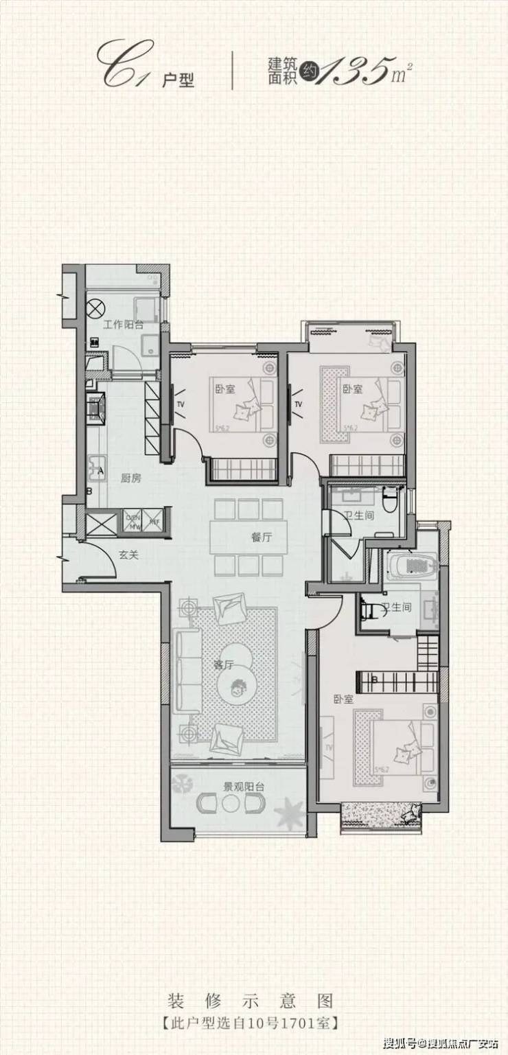 • 135㎡三房:5米宽厅+阔景阳台,中高楼层享无遮挡河景