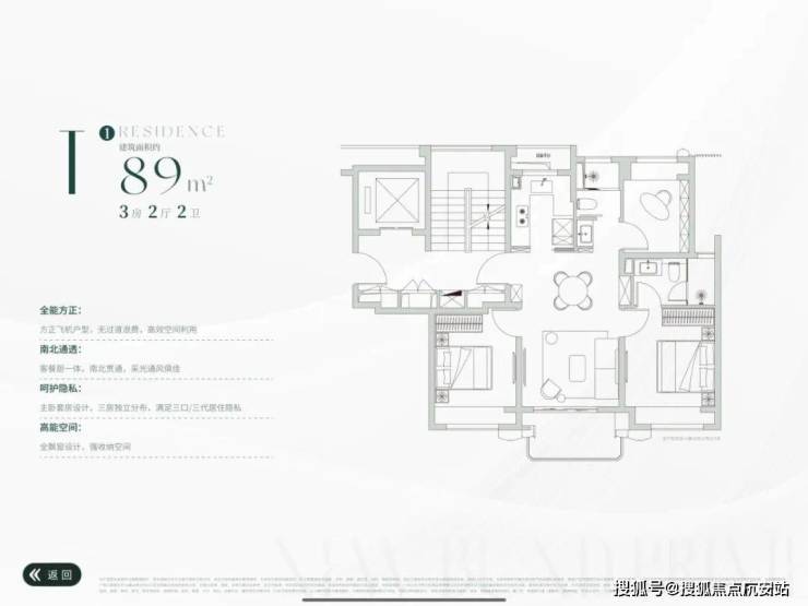 正三面宽朝南,观景阳台+满飘窗配置,提高实用空间,也拓展视觉体验。