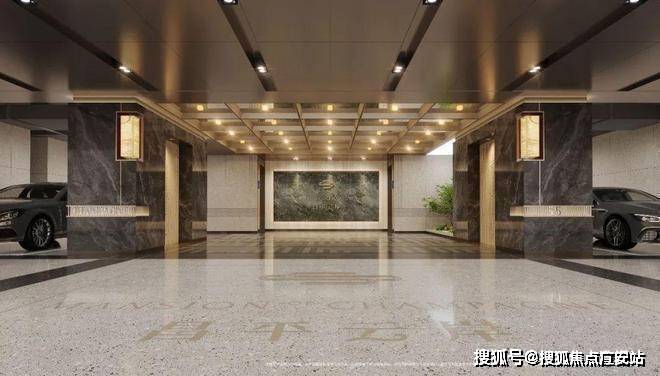 项目一楼设计星级入户大堂,挑高穹顶之下,天然石材与金属线条交织出当代艺术馆般的恢弘气度。这里不仅是归家的第一重仪仗,更