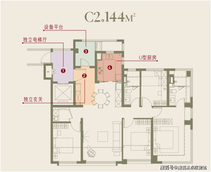 建面约144㎡户型样板间效果图: