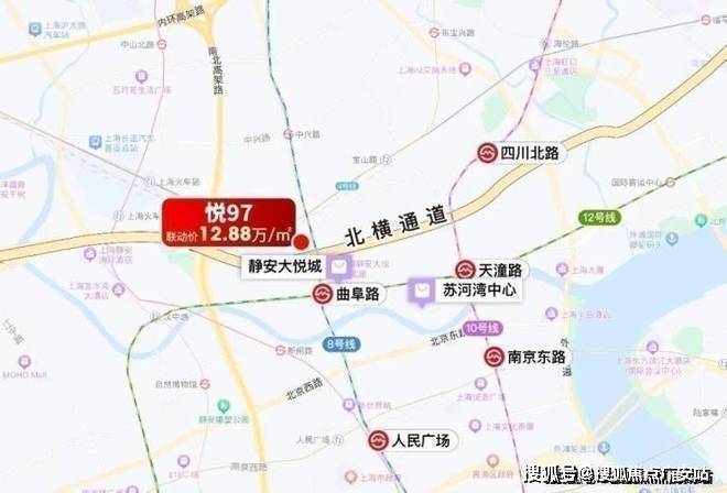 而距离人民广场1站地铁,直线约1.2公里的悦97,联动价仅约12.88万/㎡