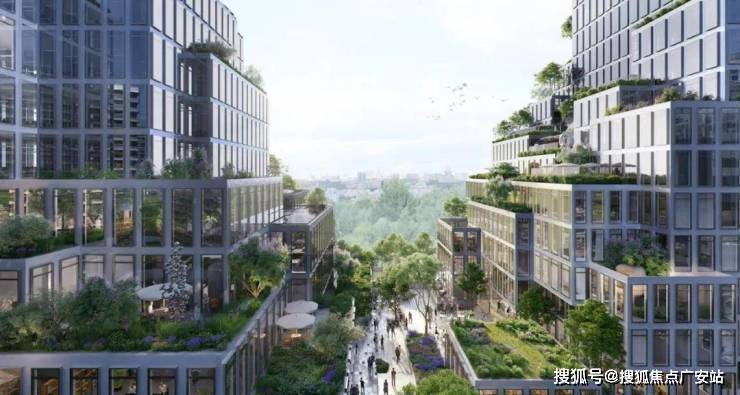 而塔楼之间在底层形成“城市峡谷”,这里是一个公共的开放式互动空间。