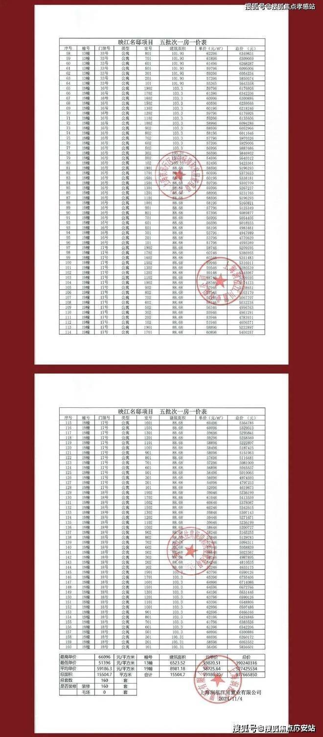 华润映江润府一房一价表▼