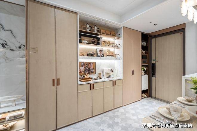 看不见的巧思——立体收纳系统:项目层高达到3.1-3.3米,借此优势创新打造了“竖向收纳”体系,通过顶部储物柜、机舱式高柜等设计,将垂直空间利用到极致,小户型也能拥有大宅的储物容量。