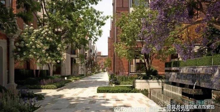 特别设计了八大映象典藏场景景观节点,有百年梧桐下的静谧巷道串联各景观节点,还有充满文化积淀的海派艺术庭院等,营造出精致、典雅的高阶生活氛围。
