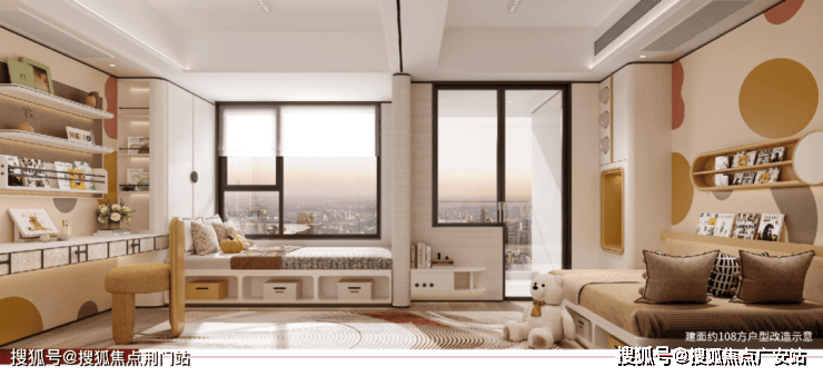 作为“主力王牌”产品,建面约108㎡户型采用去过道化设计,空间灵活可变,可打造开放式厨房拓展家庭场域,适合年轻夫妇;也可将北向书房与次卧融合,变身双孩套房,灵活适应家庭成长需求。