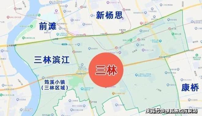 从地图上来看,三林整个板块分布于中环及外环,北面是前滩与新杨思,西面分为三林滨江与筠溪小镇(三林区域),南面是浦江镇,东面则是康桥。