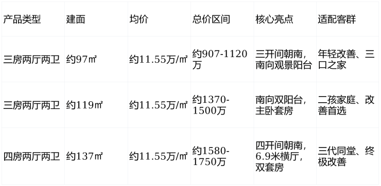核心优势:央企保利开发,品质与交付有保障;内环滨江+无遮挡江景+复兴岛三重稀缺景观;誉系3.0高端定位,精装标准高;类一梯一户,居住私密性强;97㎡起低门槛,总价可控。