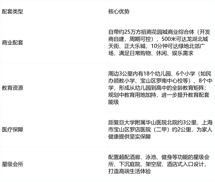 生态资源:距约430公顷顾村公园(上海最大郊野公园之一)仅2站地铁,周边公共绿地环绕,部分楼栋可远眺公园绿意,生态环境优越