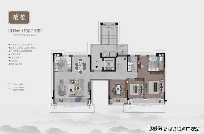 顶层最大赠送约85㎡+露台,自由发挥想象,可以用天然石材或桧木打造日式私汤汤屋,也可设计镜面泳池,亦或预留空间,做鸡尾酒会等定制主题晚宴,搭配投影幕布播放艺术电影……