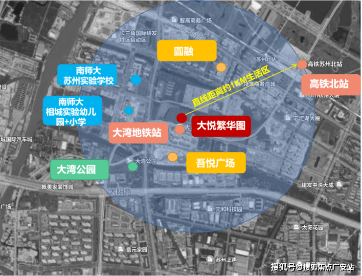 对口南师大相城实验小学和苏大实验学校初中部,步行可达;南师大苏州实验学校(含幼儿园至高中)与项目仅一街之隔;3 公里范围内有苏州大学阳澄湖校区、南京师范大学相城校区;项目还规划配建 12 班幼儿园。
