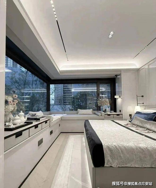 其中主卧的270°转角飘窗就有约5.7m²,✅✅中环置地中心望云售楼处电话:400-9692-958通过与外立面的结合,直接做了梳妆台和储物柜,拓展了飘窗的实用性。