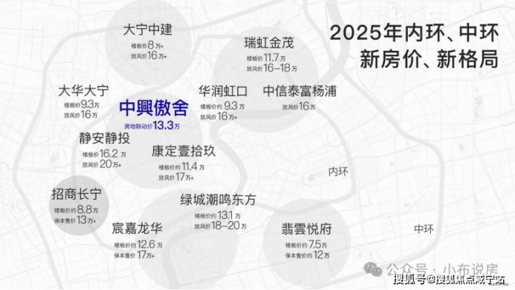 从上一次开盘至今,市场变化很大,新房价格疯涨,黄浦豪宅全线迈进20万/平;内中环徐汇滨江飙到19.5万/平,与项目同纬度的虹口内环冲击18万+/平;甚至不少内中环项目要卖到14-16万/平。(来源网上房地产以及楼板价倒推)