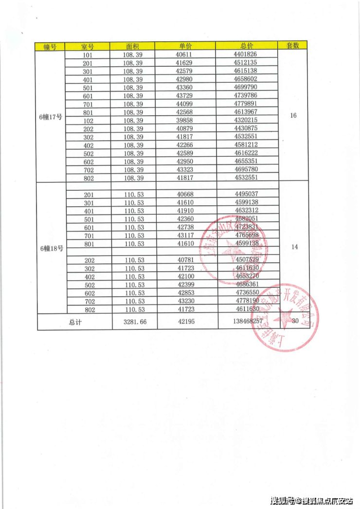 上期一房一价表: