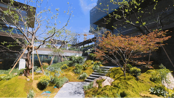 「立体的山水庭院」似乎早已成为了特有的“标签”,通过一系列的山石水林的场景与东方造园的巧思,不断回应中国人“寄情山水”情结,在城市中重构“虽由人作,宛自天开”的山水意境。