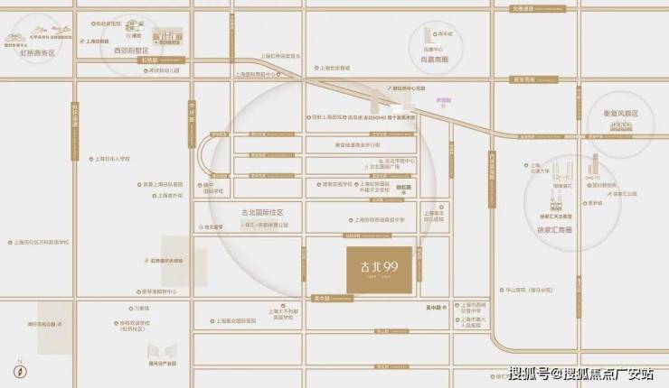 1-1.5公里步行圈:古北1699广场、黄金城道步行街、高岛屋、古北市民中心、体汇+名都体育公园、虹桥高尔夫球场、古北SOHO、程十发美术馆;2.5-3.5公里生活/商务圈:尚嘉中心、南丰城、老外街、世贸商城、徐家汇恒隆、新鸿基ITC、爱琴海购物中心、万象城、仙霞网球中心、西郊宾馆、虹桥迎宾馆、漕河泾开发区;