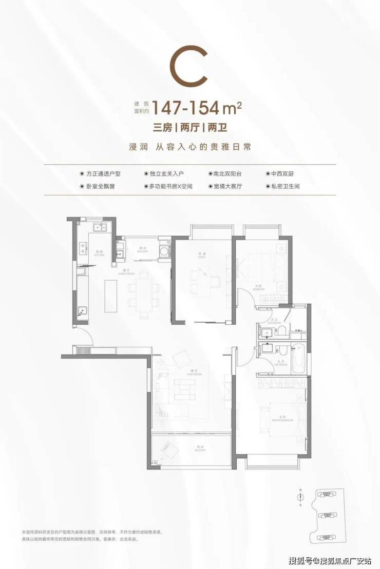 147㎡三房两厅两卫:主卧套房+双阳台,空间开阔,总价约1630-1712万,舒适改善