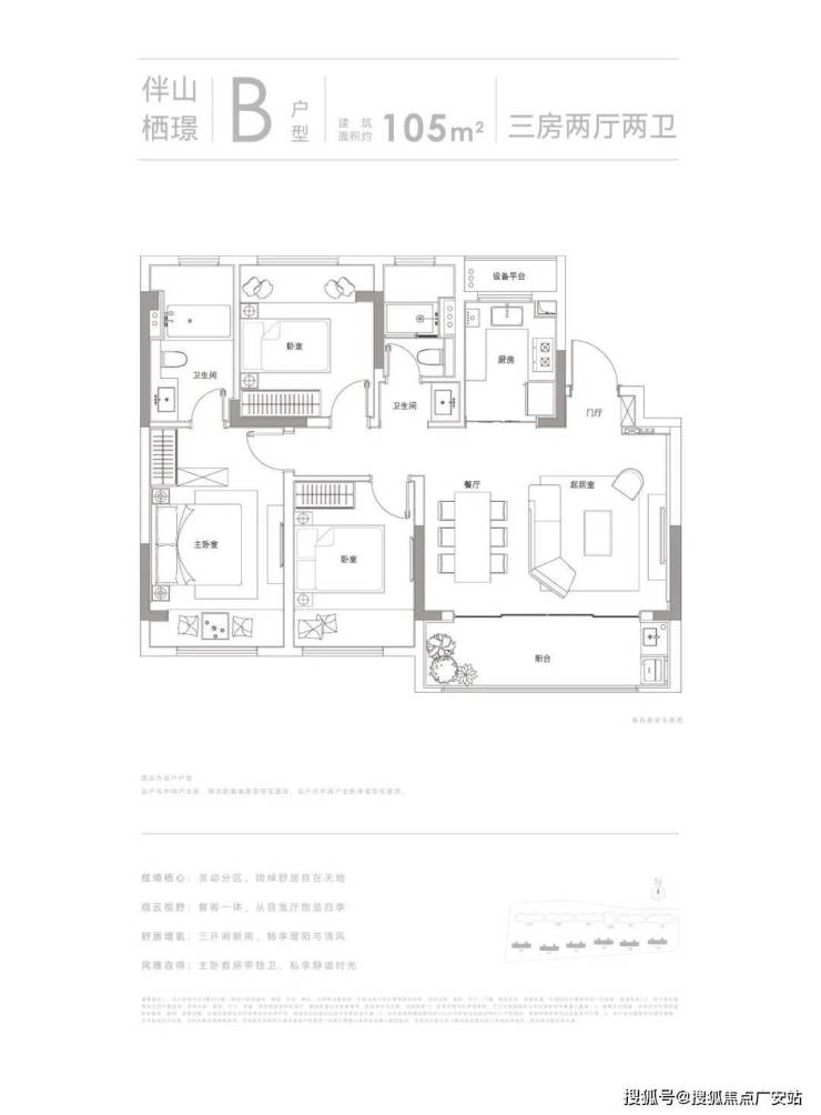 建筑面积约105㎡、148㎡亲地纯洋房,大面宽,套房式主卧,瞰景阳台,通透明净,理想生活的宽度。