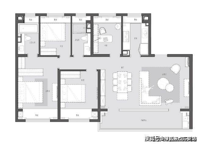 ②动线合理:户型动线分为“居住动线”(卧室、卫生间)、“家务动线”(厨房、阳台)、“访客动线”(客厅、餐厅),三者需区分开,避免交叉。例如,厨房紧邻客厅,访客动线与家务动线交叉,会导致做饭时油烟扩散到客厅,影响居住体验;卧室紧邻入户门,访客动线穿过卧室,隐私性差。